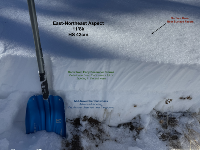 Facets, Facets, Facets. We are trending towards having a WIDESPREAD buried weak layer by the time our next storm rolls around (which may not happen until around Christmas). Ground hazards and ride-ability are your biggest concerns out there.