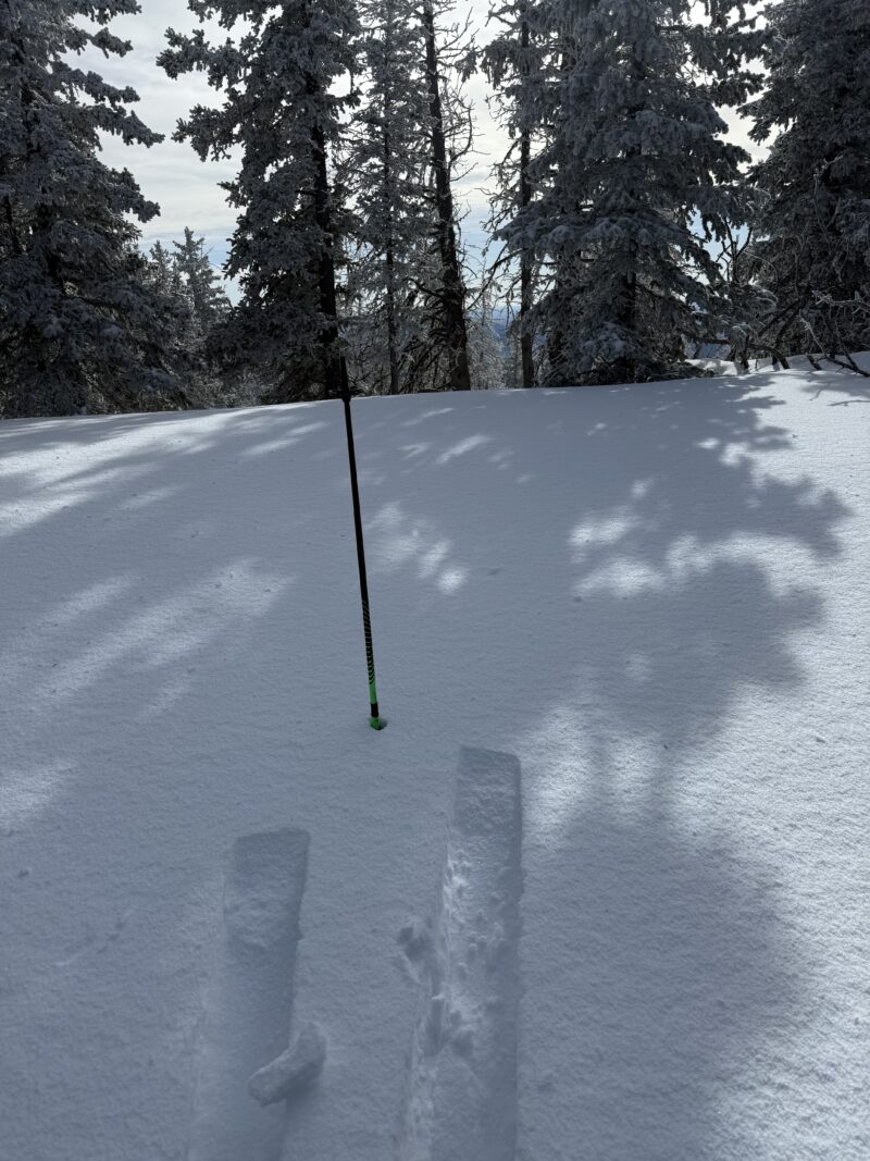 Despite traveling on a poor snowpack structure I did not experience collapsing, cracking, nor signs of avalanches. I attribute this to a lack of a slab. In isolated and extreme terrain features one may be able to find a slab over this weak snowpack.